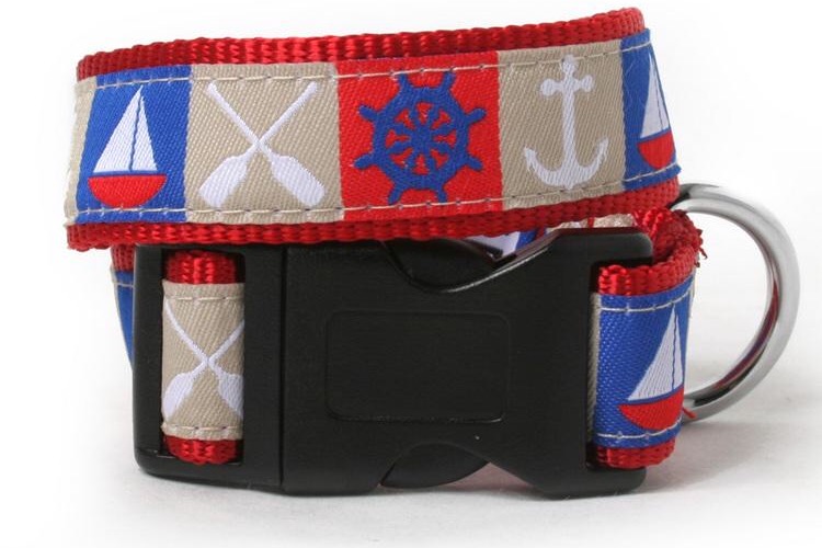 Show off your dog’s personality with a printed fabric collar. Available in several different colors and patterns, these collars are made from high-quality materials. This nautical version features a snap clasp and nickel-plated D-ring to ensure a safe, comfortable fit.