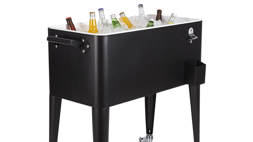 This black matte cooler is a summer essential for any cookout, tailgate or block party. The watertight liner, placed under two sealed lids, can keep up to 80 quarts clean and chilled. Features handles for easy lifting, a bottle opener, cap catcher and convenient drain.