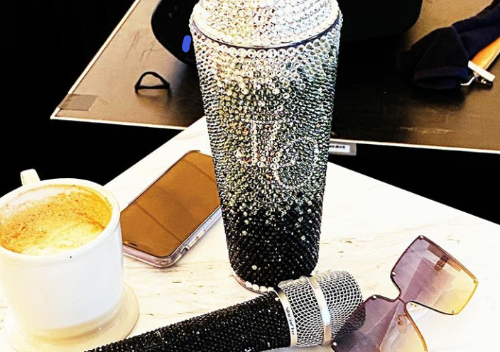 She shared with her fans, her Super Bowls Kits and are we loving it? Of course yes! Her Super Bowl kits as seen below consist of her sunglasses, phone, microphone, a cup of coffee, a mug with jlo inscribed on it.